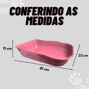 Material: Plástico de alta qualidade, resistente e fácil de lavar. Dimensões: Caixa de Areia: 11 cm x 41 cm x 33 cm. Incluso: 1 Caixa de Areia, 1 Pá de Areia, 1 Comedouro e 1 Bebedouro.