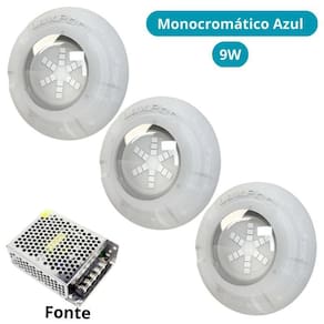 Kit de iluminação azul para piscina de até 48m - os refletores de 9w iluminam até 16m cada - refletor mais compacto do mercado, 7,5cm de diâmetro - este kit ilumina piscinas de até 48m Conteúdo do kit: 1 fonte chaveada 5a 60w 12v 3 refletores luxpool 9w 12v azul com cabo de 2m 3 dispositivos para encaixe em cano de 25mm 3 dispositivos para encaixe em cano de rosca bsp cônica Diâmetro: 7,5cm Profundidade: 5,9cm Profundidade corpo embutido: 3,6cm Peso: 0,300gr Imagens meramente ilustrativas Carrapeta, aqui tem qualidade Marca: Luxpool Ean: 7894779246836