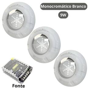 Kit de iluminação branco para piscina de até 48m - os refletores de 9w iluminam até 16m cada - refletor mais compacto do mercado, 7,5cm de diâmetro - este kit ilumina piscinas de até 48m Conteúdo do kit: 1 fonte chaveada 5a 60w 12v 3 refletores luxpool 9w 12v branco com cabo de 2m 3 dispositivos para encaixe em cano de 25mm 3 dispositivos para encaixe em cano de rosca bsp cônica Diâmetro: 7,5cmProfundidade: 5,9cmProfundidade corpo embutido: 3,6cmPeso: 0,300gr Imagens meramente ilustrativas Carrapeta, aqui tem qualidade Marca: Luxpool