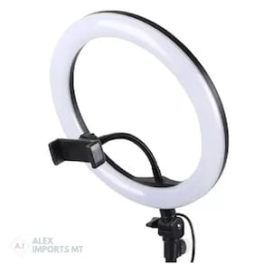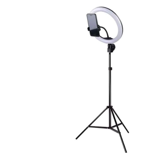 Descrição Kit contém: 1 - ring light 26cm 1 - suporte de celular abertura maxima de 8cm 1 - tripé1,60 m. 1 - controle de intensidade de iluminação - 3 tipos de tons de branco quente, frio e neutro 1 - ball head Marca: Não Informado
