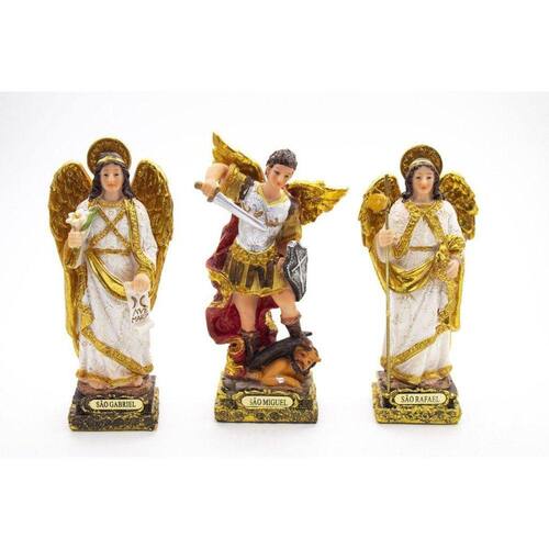 Kit Imagem Arcanjos Gabriel Miguel Rafael Importado Art Collection Resina 13 cm