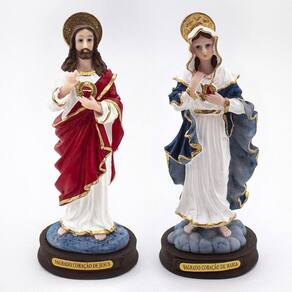 Kit Imagem Sagrado Coração de Jesus e Maria Resina 15 cm Sagrado coração de Jesus: O coração é a representação do infinito amor de Deus, do amor que chega a seu ponto alto com a vinda de Jesus. Uma das revelações para a devoção ao Sagrado Coração de Maria ou Imaculado Coração de Maria, ocorreu durante sua aparição em Fátima. Ela solicitou claramente a Lucia que divulgasse e propagasse a devoção. Dimensões Jesus 8ED75SDMU : Altura: 15 cm - Largura: 7 cm - Profundidade: 5,5 cm Dimensões Maria 2QS6CZRKD : Altura: 15 cm - Largura: 6 cm - Profundidade: 5,5 cm Dimensões aproximadas do produto. Marca: Não Informado