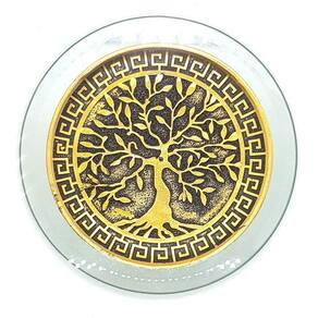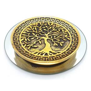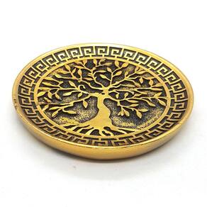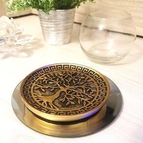 Lindo incensário em resina redondo com a árvore da vida entalhada com alto grau de detalhes.