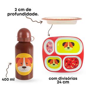 Kit Infantil Alimentação Prato Papinha + Garrafinha Squeeze Cor: Joaninha Você mamãe, está precisando de um prato novo para seu bebê poder comer E se junto com este modelo de prato, também for uma linda garrafinha squeeze Melhor ainda, personalizado com lindos desenhos que os pequenos irão amar. - material prato Divisórias: Melamina Não utilizar em fornos e microondas - Capacidade: 400ml;- material Squeeze: Metal Não utilizar em fornos e microondas Neste kit acompanha: 01 - Prato divisórias 24 cm; 01 - Squeeze 400 mL. Você pode escolher qual animação deseja ta bom Garanta já o kit do seu pequeno a :D
