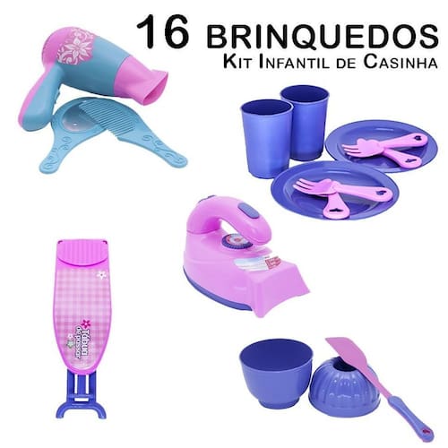 Kit infantil casinha ferro tábua forminha secador 16pç Produto em O kit vem com ferro de passar, tábua de passar, pratos, copos, garfos, faca, forminhas com acessório , secador, espelhinho, pente. - 2 pratos tamanho 10 cm de largura x 10 cm de altura - 2 copos tamanho 6 cm de altura x 4 cm de largura - 2 garfos tamanho 8 cm de altura x 3 cm de largura - 2 facas tamanho 8 cm de altura x 3 cm de largura --------------------------------------------------------------------------------------------- - tamanho das formas: 8 cm de comprimento x 7 cm de altura com 1 acessório --------------------------------------------------------------------------------------------- - 1 ferro de passar comprimento 17cm -------------------------------------------------------------------------------------- - 1 ferro de passar comprimento 17cm ------------------------------------------------------------------------------- - tamanho secador: 12 x 13 x 5cm com 2 acessórios -------------------------------------------------------------------------------------- Informações adicionais: Não recomendável para menores de 03 anos por conter partes pequenas que podem ser engolidas. Imagens fotografadas pela equipe click compras para uso exclusivo da mesma. O uso não-autorizado das imagens expostas estará sujeito a sanções previstas em lei de direitos autorais. Certificado pelos órgãos autorizados - ocps organismos de certificação de produtos Mais informações as cores, ítens e embalagem poderão variar conforme atualização do fabricante. Imagens meramente ilustrativas. Não recomendado para crianças menores de 3 anos por conter partes pequenas que podem ser engolidas ou aspiradas. Produto certificado pelo inmetro: ce-bri/innac - 00297-01a nm300/2002 Clickcompras brinquedos Homologação Inmetro: CE-BRI/IQB 005608 54346/21-005 Marca: Não Informado