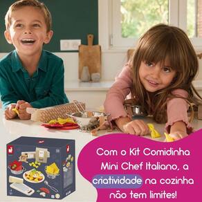 Kit Infantil Comidinha Mini Chef Italiano Brinquedo Criativo O kit de brinquedos Mini Chef Italiano oferece às crianças uma experiência divertida e educativa, permitindo-lhes explorar o mundo da culinária de forma lúdica.