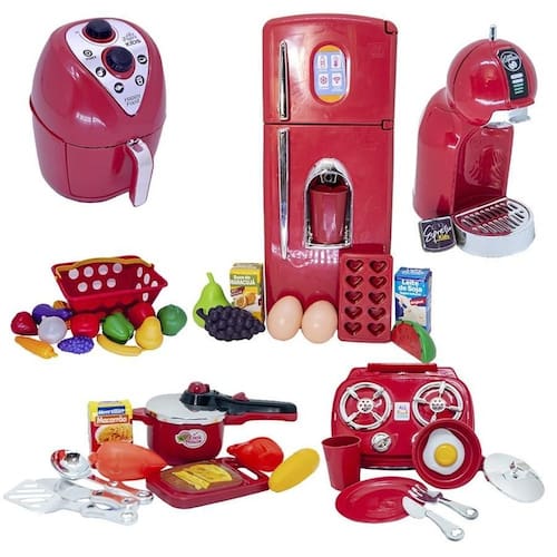 Kit infantil cozinha chefe geladeira mercado cafeteira 40pç