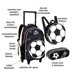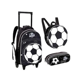 Kit Infantil Escolar Roda + Lancheira + Estojo Bola FTCK102 Mochila estampa exclusiva com compartimento super espaçoso e fechamento em zíper. Possui bolso frontal fundo com zíper, bolsos laterais em elástico, alças de costas acolchoadas e ajustáveis, puxador personalizado, carrinho com rodas deslizantes e pezinho de apoio, alça de mao fixa e acolchoada. Puxador leve em alumínio com ajuste de altura. acompanha lancheira térmica e estojo. Tamanho aproximado em cm: AxLxP 40x20x30 Altura do puxador 90cm Ean: 7893236694104