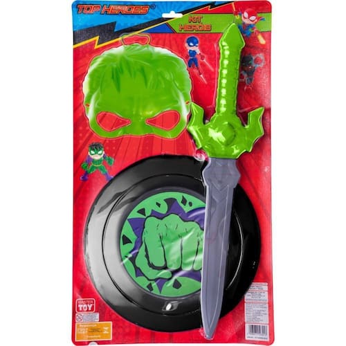 Inclui máscara, escudo e espada para uma experiência completa de super-herói Máscara e escudo feitos de polipropileno PP , leves e seguros Espada em PEAD, durável e flexível, ideal para brincadeiras ativas Cores vibrantes e detalhes inspirados no Hulk, encantando os pequenos fãs Perfeito para festas à fantasia, jogos de faz de conta e atividades ao ar livre Estimula a criatividade, imaginação e socialização entre as crianças