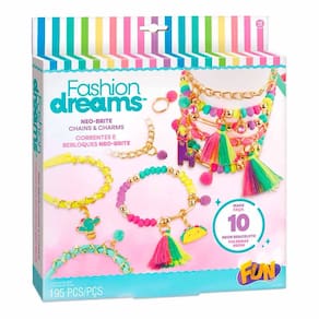 Kit Infantil - Fashion Dreams - Pulseiras e Braceletes Neon - Fun Divirta-se: as crianças dão vida ao mundo da criatividade com os conjuntos Fashion Dreams. Elas podem criar, sonhar, compartilhar e fazer de novo! No melhor estilo “DIY (Do It Yourself - Faça Você Mesmo) as crianças podem criar seus próprios braceletes e pulseiras neon! Detalhes: • Crie pulseiras e braceletes deslumbrantes com o kit Crie suas Correntes e Amuletos Neo-Brite • Este kit único permite montar pulseiras e braceletes com um toque elegante • Ideal para crianças e adolescentes que adoram artesanato e moda • Conjunto perfeito para estimular a criatividade e proporcionar horas de diversão • Instruções fáceis de seguir, as pulseiras e braceletes terão um charme especial • Com 195 peças - para montar até 10 modelos de braceletes e pulseiras neon Informações: • Produto: Kit Correntes e Amuletos Neon • Marca: Fun Divirta-se • Coleção: Fashion Dreams • Tipo: Conjunto para fazer pulseiras e braceletes • Categoria: Beleza e Moda Infantil • Estilo de brincar: DIY (Faça você mesmo) • Conteúdo: 195 itens - 01 folha de instruções - 01 bandeja de trabalho - 01 anel ajustável - 01 pompom rosa - 01 cordão elástico transparente de 2,5 m - 03 berloques exclusivos - 03 berloques de pedras - 03 borlas - 05 peças de corrente americana dourada - 06 berloques de pompom - 06 cordões elásticos de tecido de 25 cm cada (02 rosas, 02 amarelos, 02 verdes) - 164 contas diversas • Recomendação: para crianças a partir de 08 anos de idade Especificações: • Modelo: Kit Correntes e Berloques Neo-Brite • Referência: F0151-3 • Código de Barras: 7908489407699 • Embalagem (C x A x L): 24 x 23 x 4.5 cm • Embalagem (Peso): 0.267 kg • Material / Composição: Plástico • Registro: 02115-000 / OCP 0061 • Certificado: Órgãos Autorizados - OCP´S (Organismos de Certificação de Produtos) Aviso: • As imagens são meramente ilustrativas • Os tamanhos e medidas são aproximados • As cores e estampas dos produtos podem ter variações • As informações são de responsabilidade do fabricante ou fornecedor