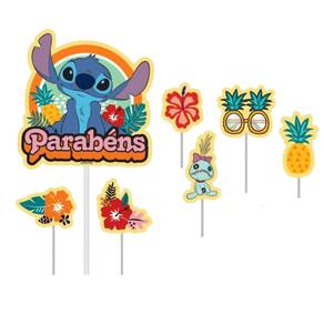 Itens inclusos: 1 painel de tnt do personagem, 1 faixa feliz aniversário, 7 toppers para bolo, 24 palitos decorativos, 4 decorações de mesa.