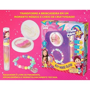 Kit Infantil Lip Gloss Com Blush E Pulseira Maria Clara JP O Kit Maquiagem Maria Clara e JP vai transformar a brincadeira em um momento mágico e cheio de criatividade Inspirado na famosa youtuber infantil, este kit é perfeito para os pequenos que adoram explorar o mundo da beleza de forma segura e divertida. Acompanha um lip gloss tricolor, um blush glow e uma linda pulseira de miçanga com pingente. Tudo pensado especialmente para as crianças A maquiagem é livre de parabenos, hipoalergênica e dermatologicamente testada, garantindo uma experiência segura e tranquila. Mais do que diversão, esse kit estimula a coordenação motora fina, a percepção de cores, o senso estético e a criatividade. Além disso, desenvolve o faz de conta, a autonomia e o autoconhecimento, permitindo que as crianças expressem suas emoções e personalidade de forma lúdica. FICHA TÉCNICA CONTÉM: 01 Lip Gloss 01 Blush Glow 01 Pulseira modelo OBS: Maquiagem ideal para crianças. Ótima opção para presente ou uso pessoal. Idade Recomendada: +3 anos REF: 2114 Aviso: As cores podem variar do apresentado nas fotos. Imagens meramente ilustrativas. Homologação Inmetro: IP-BRI-0565/2022-1 Marca: Não Informado