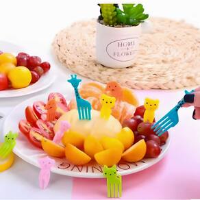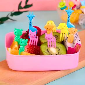 Kit Infantil Mini Garfinhos Para Petiscos Frutas E Lancheira - Cor: 8 Garfinhos Girafa