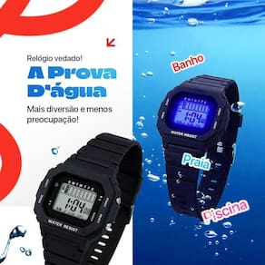 Dois relógios digitais: opções de caixa quadrada e bracelete para diferentes ocasiões.