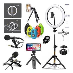 Transforme seu conteúdo e conquiste seu público com imagens e áudio de qualidade O Kit Perfeito para Criadores de Conteúdo: Iluminação Impecável: Ring Light LED 26cm com 3 tonalidades quente, fria, mesclada e 10 níveis de intensidade. Vídeos Estáveis e Profissionais: Tripé ajustável de até 2,10m para estabilidade total. Áudio Cristalino: Microfone de Lapela Condensador de alta sensibilidade, sem a necessidade de adaptadores. Praticidade Total: Controle Bluetooth para selfies e gravações remotas. Versatilidade Extra: Mini tripé de mesa para celular, ideal para vlogs e chamadas. O Ring Light LED de 26cm 10 polegadas oferece controle total sobre a sua iluminação. Ajuste a intensidade em até 10 níveis e escolha entre as 3 tonalidades de cor quente, fria e mesclada para criar o clima perfeito em cada gravação ou foto. Alimentado via USB, é compatível com carregadores de celular e fonte bivolt. O tripé principal de ferro, com ajuste de altura de até 2,10m, garante estabilidade para seu equipamento, e o cabo de 1,5m possui controle integrado para ajustar luz e cor. O Microfone de Lapela Condensador é a sua secreta para um áudio impecável. Com alta sensibilidade, dinâmica e ampla resposta de frequência, ele captura sua voz com clareza, sem ruídos externos. Seu clip giratório permite fixação fácil e a espuma protetora abafa ruídos de vento. Com cabo de 1,5m, é ideal para vídeos, entrevistas e podcasts. O Controle Remoto Bluetooth te liberta Tire fotos e grave vídeos sem tocar no celular, com alcance de até 5 metros. Compatível com Android 4.22+ e iOS 6.0+. O Mini Tripé de Mesa, feito em plástico reforçado e com base sólida, oferece estabilidade para seu celular e é super portátil, com cerca de 15cm quando fechado. Eleve o nível das suas criações Itens Inclusos: 1 Ring Light 26 cm 10 Polegadas 1 Suporte de Celular para Ring Light 1 Tripé Grande 2,10m 1 Microfone de Lapela 1 Controle Bluetooth 1 Mini Tripé de Mesa para Celular Adquira já o seu kit e comece a criar conteúdo incrível Homologação Anatel: 112572013224