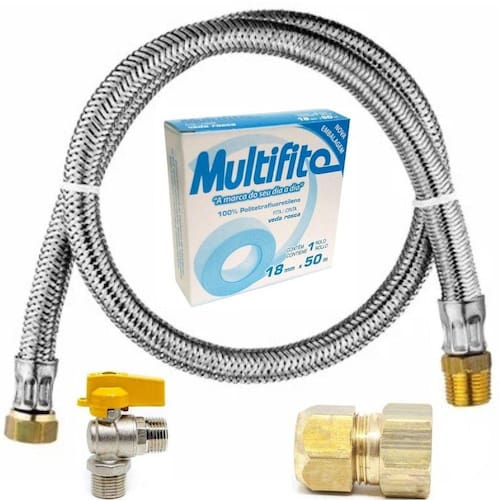 Kit instalação gás encanado mangueira 80cm+registro+adaptado Kit instalaçao gás encanado mangueira 80cm+registro+adaptado Obs: este kit é compatível com qualquer marca e modelo. Obs: temos outras medidas das mangueiras: 80cm, 1,00mt, 1,20mt, 1,50mt, 2,00mt, 2,50mt, 3,00mt: use o campo de perguntas para cotação de valores... Kit contém: 1- flexível rosca 1/2 tamanho 80cm material borracha nitríca com cobertura trançada metálica conforme norma nbr 14.955 e 13419, pressão de trabalho: 2,0 mpa / 20 bar / 290 psi, pressão de ruptura: 10,0 mpa / 100 bar / 1450 psi, temperatura de trabalho: -20c à 120c 1- registro 1/2 angular 90 macho/macho abre fecha o gás 1- adaptador dako latão femea para flexivel em bico mamadeira dos aparelhos 1- fita teflon veda rosca 18 x 50mm 1- anel vedação borracha nitrílica para água e gás Obs: instruções de utilização do flexivel de borracha para condução de gases glp/gn conforme a norma nbr 13.419 enbr 14.955 1) os tubos flexiveis só devem ser instalados em aparelhos de queima, com reguadores de pressão, fabricados conforme a norma nbr. 8473; 2) os tubos flexiveis só devem ser instalados em aparelhos que, quando pleno uso, não provoquem no ponto de ligação, ou no ambiente por onde passam,A temperatura superior a 120c e inferior a -20c 3) os tubos flexiveis não devem atravessar nem ser embutidos em paredes e pisos; 4) não é permitido efetuar qualquer tipo de inserção ou emenda (soldagem ou colagem); 5) nos pontos de ligações fixar as extremidades somente com conectores e vedações apropriados; 6) o tubo flexivel não deve atravessar por trás de aparelhos de queima; 7) não e permitido o uso de mais de um tubo flexivel ligados em série; 8) o tubo flexivel não deve ser instalado torcido; 9) obedecer ao raio minimo de curvatura adimissivel de 102mm; 10) não apertar excessivamente os terminais roscaveis ( aperto excessivos podem espanar os terminais); 11) verificar se há vazamentos antes de ultilizar o fogão, o teste deve ser feito com espuma(àgua e sabão),se houver bolhas é sinal de vazamento. Refaça a instalaçâo; 12) não nos resposabilizamos por má instalação do produto; 13) consulte sempre um tecnico de instalação de gás. Composição do produto: Nbr 13.419- mangueira de borracha nitrilica, capa trançada com fios de aluminio e luva de aperto metalica. Nbr 14.955- mangueira de borracha nitrilica, capa trançada com fios de aluminio, conexões de latão e luva de aperto metalico. Possui certificado de qualidade Obs: guiga gás peças e acessórios fornece toda linha para instalação a gás glp e gn veja todos nossos produtos em mais anuncios do vendedor.