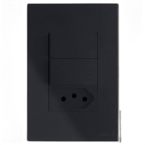 1 - placa para 3 modulo horizontal sem suporte 4x2 - recta black satin fosco - brs12433-8bk