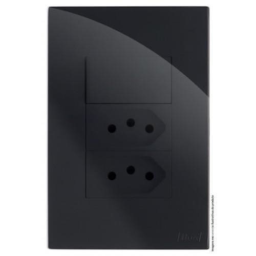 Cj interruptor simples + tomada dupla 20a 4x2 - recta black gloss - brg11351-4bk