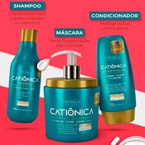 Kit Ionizante Catiônica Completa Forever Liss é um ritual de cuidado para cabelos indisciplinados, rebeldes e com volume excessivo. O Shampoo Catiônica Forever Liss de 300ml é disciplinante para cabelos rebeldes ou com frizz, proporcionando uma limpeza eficaz sem danificar os fios. A Máscara Catiônica Forever Liss de 450g restaura a estrutura das cutículas capilares, com nanopartículas com cátions ativados que eliminam a estática, corrigem a superfície capilar e promovem a atração entre os fios. É compatível com a técnica de Low Poo. O Condicionador Catiônica Forever Liss de 200g condiciona e desembaraça, hidratando profundamente os cabelos.