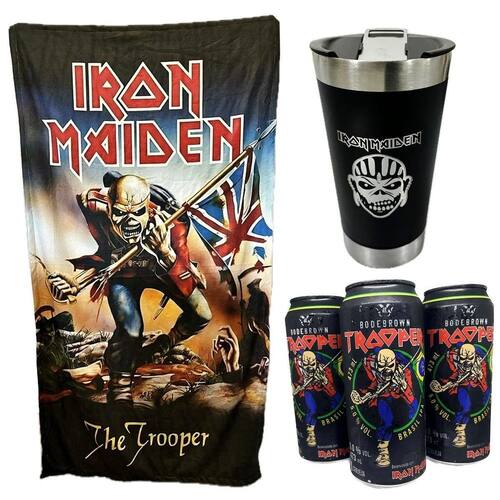 Kit iron maiden 3 cervejas trooper + toalha + copo 500ml Kit iron maiden