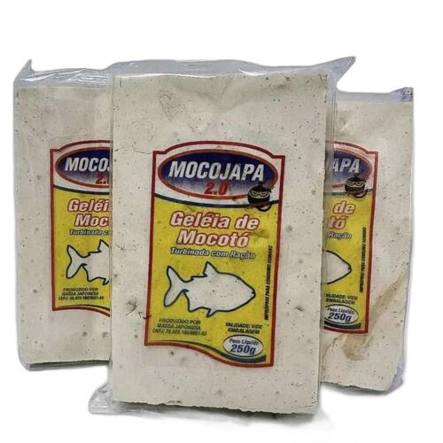 Kit isca pesqueiro geleia de mocotó mocojapa 2.0 massa japonesa 3 unidades tamba pacu O kit com 3 unidades de geleia de mocotó mocojapa da marca massa japonesa é a escolha ideal para pescadores que buscam um atrativo diferenciado e de alto desempenho. Cada embalagem contém 250g de geleia formulada com ingredientes selecionados, desenvolvida para potencializar a atratividade das iscas, aumentando as chances de fisgadas. Sua consistência permite aplicação direta em massas, rações ou outros tipos de iscas, liberando aroma e sabor de forma gradual na água, atraindo peixes de longe. É perfeita para uso em pesqueiros e lagos, especialmente na pesca de pacus e tambacus, garantindo versatilidade e eficiência em diversas situações.