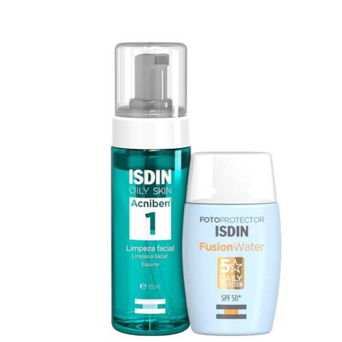 O Kit ISDIN Limpeza e Proteção é ideal para peles oleosas e propensas à acne, combatendo o excesso de oleosidade e oferecendo limpeza, frescor e proteção UV com FPS60.