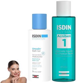 1 ISDIN Ureadin Bath Gel de banho Hidratante - 100ml 1 Isdin Acniben Sabonete Líquido Limpeza Facial - 208g