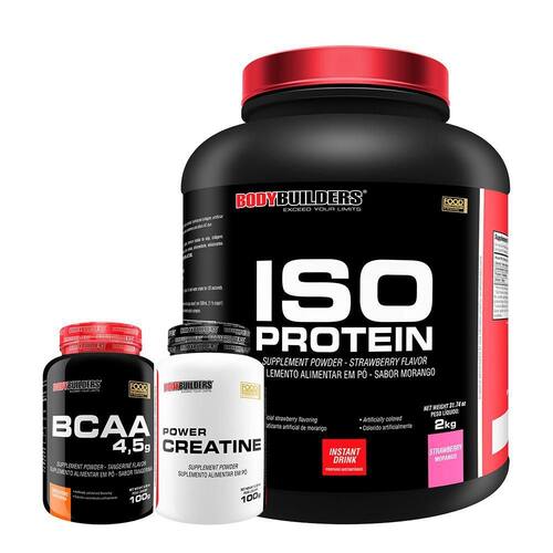 Kit iso protein 2kg morango + creatina + bcaa - bodybuilders - Morango - 2 kg