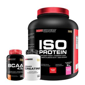composição do kit: 1x iso protein 2kg - morango 1x bcaa 4. 5 100g - tangerina 1x 100% creatina 100g