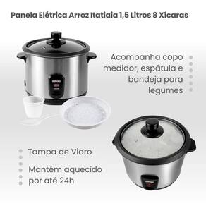 Kit Itatiaia Panela De Arroz 1,5 L Midi E Grill Essencial Preto/inox 220 V Transforme sua cozinha com o Kit Itatiaia Arroz + Grill, que une funcionalidade e estilo em dois eletroportateis essenciais. A panela de arroz eletrica da linha Midi, com capacidade para ate 8 xicaras (1,5 L), e ideal para preparar refeicoes nutritivas para a familia. Seu corpo em inox transmite durabilidade, enquanto a tigela interna removivel e antiaderente facilita a limpeza. Com 500W de potencia, ela cozinha rapidamente e mantem o alimento aquecido por ate 24 horas perfeita para quem quer praticidade e economia diaria. Alem disso, o Grill Itatiaia Essencial 1000W entrega alta performance para grelhar carnes, legumes, sanduiches e muito mais. Com chapa ondulada antiaderente e temperatura que chega a 210 C, ele garante marcas de grelha e coccao uniforme. Sua abertura de 90 a 180 permite preparar diferentes tipos de receitas, enquanto os LEDs indicam quando o aparelho esta ligado e aquecido, garantindo controle total durante o uso. O acabamento em inox traz elegancia e facilita a limpeza, enquanto a trava de seguranca e a base antiderrapante asseguram estabilidade em cada preparo.