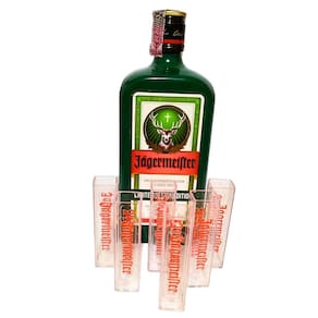Kit Jagermeister Limited Edition Herbal Green Design 700ml + 6 Copos Tubos de Acrílico