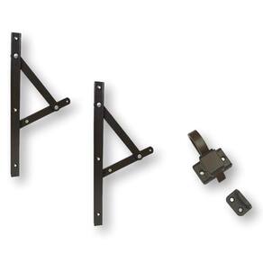 Kit Janela Maxim-ar Braço 20cm + Fecho Gatilho Marrom Kit Janela Maxim-ar Braço 20cm + Fecho Gatilho Marrom - Braço de sobrepor em alumínio para janelas maxim-ar da linha madeira ou alumínio. Produzido com material alta qualidade, possui freio com regulagem, acabamento com pintura eletrostática ( Não enferruja ). Abertura suave e com angulo de até 90. O preço é do PAR. Lado esquerdo e direito.