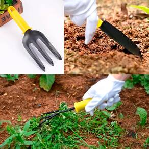 Quantidade de peças: 3 Funções: Cavar, plantar, afofar e remover plantas indesejadas Material: Aço resistente com acabamento anticorrosivo Revestimento: Cabos com empunhadura antiderrapante Cor: Preto com detalhes coloridos (variação conforme lote) Indicação de uso: Jardinagem em geral, hortas, canteiros e vasos Resistência: À água e ferrugem Peso aproximado: 400g (conjunto)