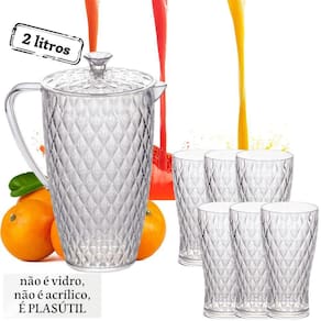 Kit de jarra com taças de água em poliestireno (idêntico ao acrílico), contendo 7 peças, sendo: