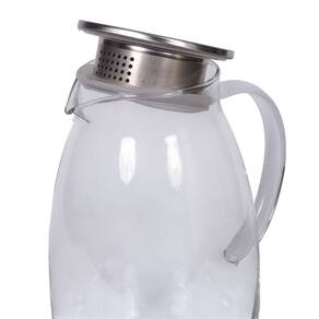 Jarra Inteligente 2,2L: Equipada com tampa em aço inox 304 e sistema de filtro bidirecional. De um lado, fluxo livre; do outro, filtro para reter frutas, gelo ou ervas de chá. Kit Jarra de Vidro 2,2L com 6 copos 250ml Diamonds
