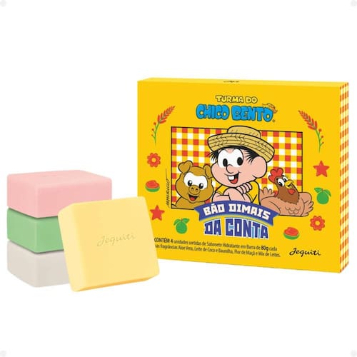 Descubra o encanto e a alegria do campo com o Kit Jequiti Turma do Chico Bento: Estojo com 4 Sabonetes. Perfeito para transformar a rotina de higiene em um momento de pura diversão, este kit exclusivo da JEQUITI traz a magia dos personagens mais queridos do Brasil para o seu dia a dia. Ideal para presentear ou para garantir um banho mais divertido e cheiroso para toda a família, especialmente para os pequenos fãs do Chico Bento. Com fragrâncias suaves e fórmulas delicadas, estes sabonetes proporcionam uma limpeza suave e eficaz, cuidando da pele das crianças enquanto as transportam para o mundo mágico da Vila Abobrinha. Transforme o banho em uma aventura inesquecível com o Kit Jequiti Turma do Chico Bento.