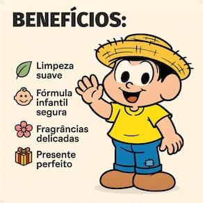 Deixa a pele delicadamente perfumada com a fragrância suave da Turma do Chico Bento.
