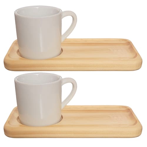 Kit Jogo 2 xícaras/canecas 100ml c/ pires Ret. Pinus Peças de porcelana feitas de material de alta qualidade, queimados em alta temperatura, o que os torna fortes, resistentes e com alto brilho, e deixa qualquer ambiente mais bonito e moderno. Nova tendência, mistura de porcelana com madeira, charmosa e moderna para servir em xícaras para todos de sua casa e receber as visitas e amigos. A porcelana tem uma enorme vantagem sobre outros materiais, pois é fácil de limpar e não absorve cheiro, o que deixa a peça e o ambiente livre de mal cheiro. São resistentes ao forno e micro-ondas. Podem servir Café, Chá, Capuchino Contem 2 Pires bem modernos de pinus com gravação à laser "Ótima opção tambem para cafeterias" Cor Branca Capacidade 100ml OBS: Por se tratar de madeira de pinus natural, entre os pires podem existir pequenas variações na tonalidade das cores da madeira. Pode haver variação de tonalidade entre as peças de porcelana devido a diferentes lotes de queima. Embalagem contêm 4 peças (2 xícaras e 2 pires) Marca: Antilope Decor Porcelanas