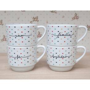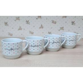 Kit Jogo 4 Xicaras Café Chá hotel 200ml Empilháveis - Poá Colorido Frases