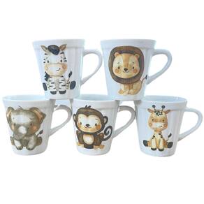 Jogo 6 Canecas120ml tipo Copo Americano canelado- Safari - Porcelana brancaPeças de porcelana feitas de material de alta qualidade, queimados em alta temperatura, o que os torna fortes, resistentes e com alto brilho, e deixa qualquer ambiente mais bonito e moderno. A porcelana tem uma enorme vantagem sobre outros materiais, pois é fácil de limpar e não absorve cheiro, o que deixa a peça e o ambiente livre de mal cheiro.São resistentes ao forno e micro-ondas. Podem ir no microondas e lava-louças Ideais para servir café, chá, cappuccino e demais bebidas Cor BrancaCapacidade 120ml Os bichos a serem enviados na compra são aleatórios conforme disponibilidade no momento. Opções: Elefante, Girafa, Leão, Zebra e Macaco. OBS: Pode haver variação de tonalidade entre as peças devido a diferentes lotes de queima.Embalagem contêm 6 peças Marca: Antilope Decor Porcelanas