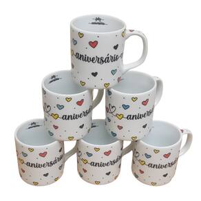 Kit Jogo 6 canecas 300ml Feliz Aniversário - Porcelana