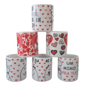 Kit Jogo 6 canecas Flork 300ml Frases Namorados - PorcelanaContém 6 canecas com design bem interessante, você pode presentear as pessoas que você gosta. Frases: -Ai Love You -Desculpa esse meu jeito, mas foi você que começou, Te amo -Te amo mesmo não te suportando mais -Eu Te Amo , mas as vezes dá vontade de... -Um mimo pra tú Forte resistente, pode ir ao micro-ondas. Ótimas para servir café com leite, água e bebidas em geral. Decalques com queima e fixação em alta temperatura, o que dá um brilho e charme há qualquer ambiente.OBS: Embalagem contem 6 unidades Marca: Antilope Decor Porcelanas
