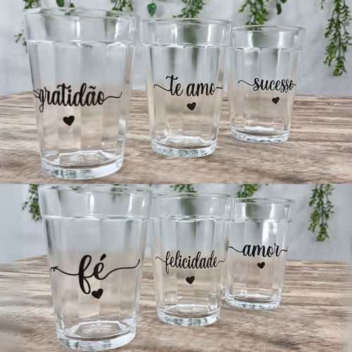 kit Jogo 6 copos Americanos Vidro180ml Frases Motivacionais Peças feitas de material de alta qualidade, resistentes e com alto brilho, e deixa qualquer ambiente mais bonito e moderno.O vidro tem uma enorme vantagem sobre outros materiais, pois é fácil de limpar e não absorve cheiro, o que deixa a peça e o ambiente livre de mal cheiro. Esse kit é super moderno e deixará sua mesa de servir muito charmosa. O material é vidro de alta qualidade São resistentes a lava-louças e micro-ondas. Os desenhos são decalque aplicados e queimados junto à peça, o que os funde a peça, dão brilho e não desbotam com o tempo.