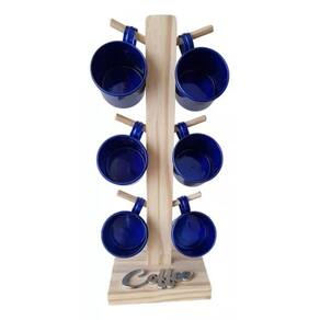 Kit Jogo 6 Xícara Azul Café Suporte Madeira Mesa Cozinha Jogo de café com 6 xícaras em alumínio cor azul + suporte madeira para servir aquele delicioso cafezinho após as refeições além de decorar mesa ou balcão Xicara capacidade 90 ml Medidas Suporte: base 11 cm x altura 30 cm Ean: 7893030183910