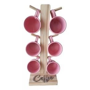 Kit Jogo 6 Xícara Rosa Café Suporte Madeira Mesa Cozinha Jogo de café com 6 xícaras em alumínio cor Rosa + suporte de madeira para servir aquele delicioso cafezinho após as refeições além de decorar mesa ou balcão Xicara capacidade 90 ml Medidas Suporte: base 11 cm x altura 30 cm