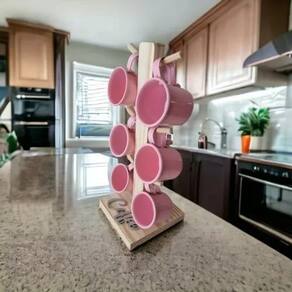 Kit Jogo 6 Xícara Rosa Café Suporte Madeira Mesa Cozinha Jogo de café com 6 xícaras em alumínio cor Rosa + suporte de madeira para servir aquele delicioso cafezinho após as refeições além de decorar mesa ou balcão Xicara capacidade 90 ml Medidas Suporte: base 11 cm x altura 30 cm