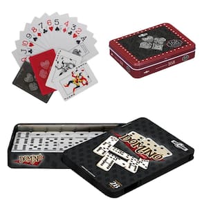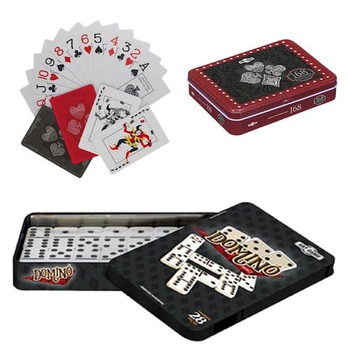 KIT JOGO DE BARALHO 168 C/ 2 MAZOS DE 54 CARTAS PROFISSIONAL + DOMINÓ 28 PEÇAS 7 MM NA LATA