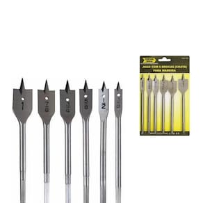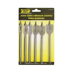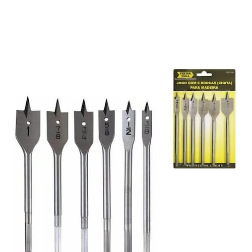 Kit de brocas para madeira Kit com 6 peças Modelo Chata plana Modelo para Item para quem busca qualidade e durabilidade Marca Fertak Broca para madeira, dimensões: 3/8 - 1/2 - 5/8 - 3/4 - 7/8 - 1 Broca em aço carbono, mais resistente ao calor devido atrito com a madeira de 3 meses para defeitos de fabricação Tag: madeira, ripa, porta, telhado, furo, marcenaria, buraco, instalação Marca: Não Informado