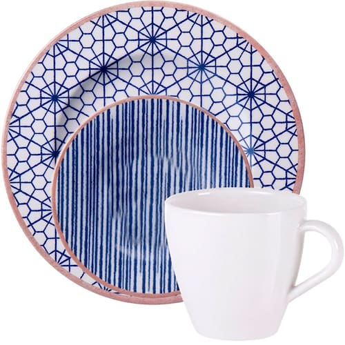 Kit 8 Xícara 200ml Com Pires 15cm De Diâmetro Abstratta;