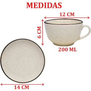 • Dimensões: Xicara com Pires 7cmX14cm, Prato Lanche 19cm de Diâmetro
